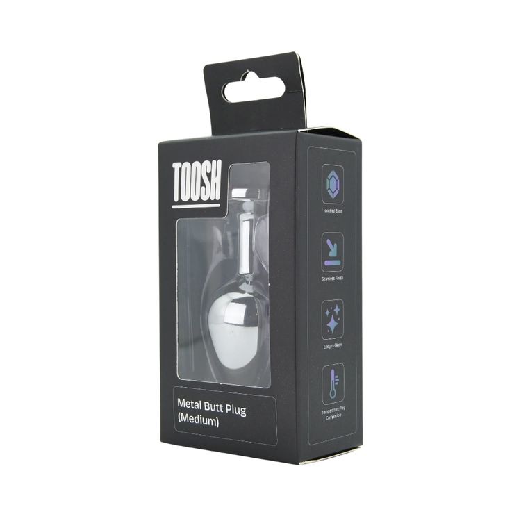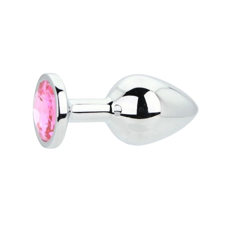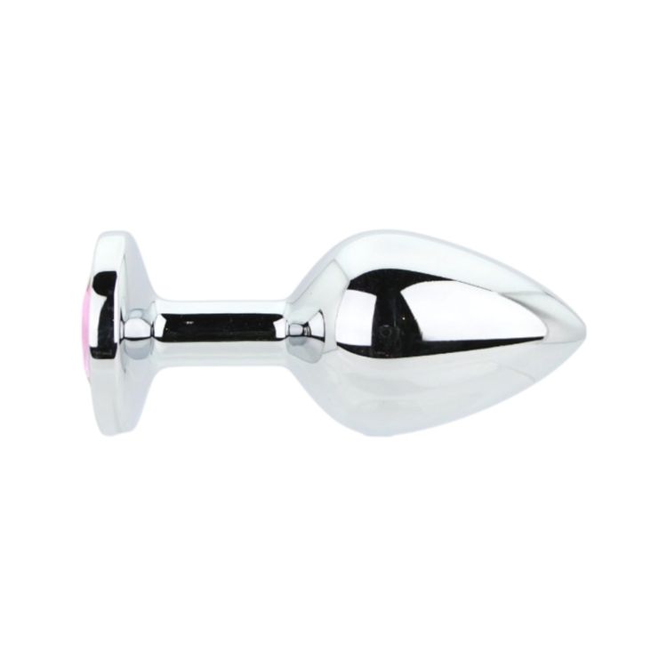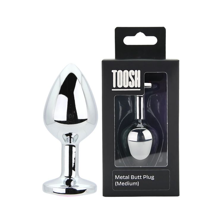 Toosh Silver Metal Butt Plug Medium Pink Stone Features: